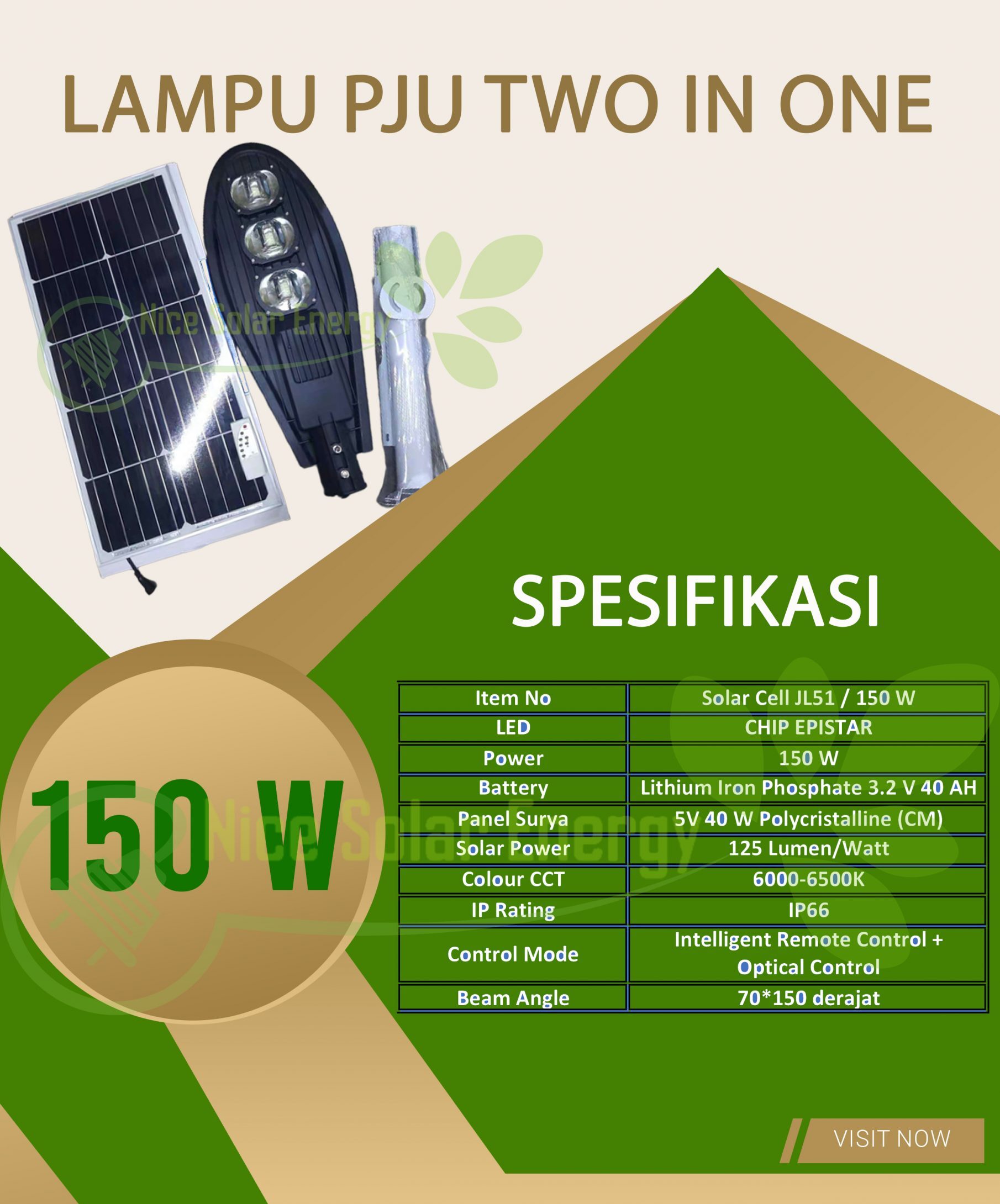 KEUNGGULAN– Hemat energi karena 100% dari sinar matahari– Lokasi bisa jauh dari jaringan PLN– Bebas perawatan– Cahaya LED super terang dan tahan lama– Hemat biaya–